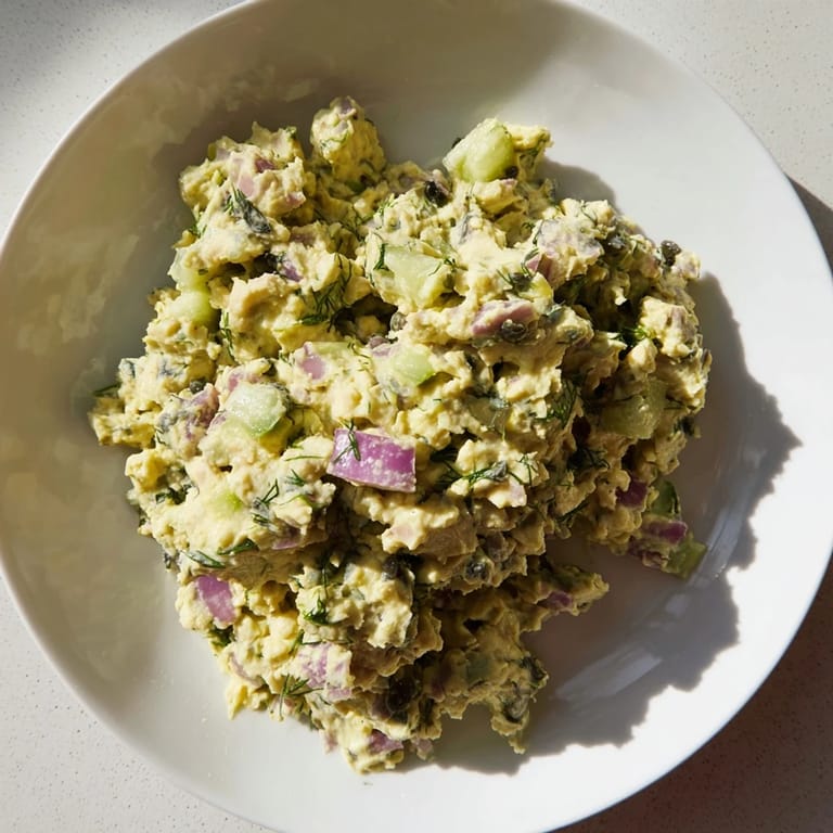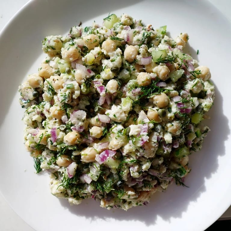 Pin It A vibrant, plant-based twist on classic tuna salad, featuring mashed chickpeas and a touch of seaweed for an authentic ocean flavor. Perfect for sandwiches, wraps, or salads.