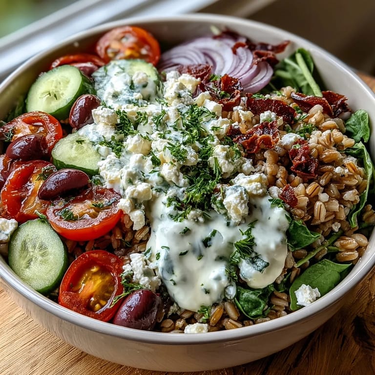 Pin It My cutting board was a mess of red and green, juice pooling around the tomatoes, when I realized I'd forgotten to start the farro. It was one of those distracted Sunday afternoons where I'd put on music and lost track of time chopping vegetables. That mistake taught me to always get the grains going first, but it also reminded me why I love this bowl so much: even when you're scattered, it comes together beautifully. The colors alone are enough to lift your mood. There's something about building a meal in layers that feels less like cooking and more like composing.