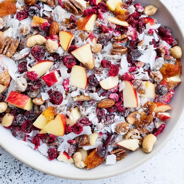 Pin It A fragrant winter blend featuring dried fruits, nuts, and warming spices—perfect for snacking on cold days or sharing at festive gatherings.