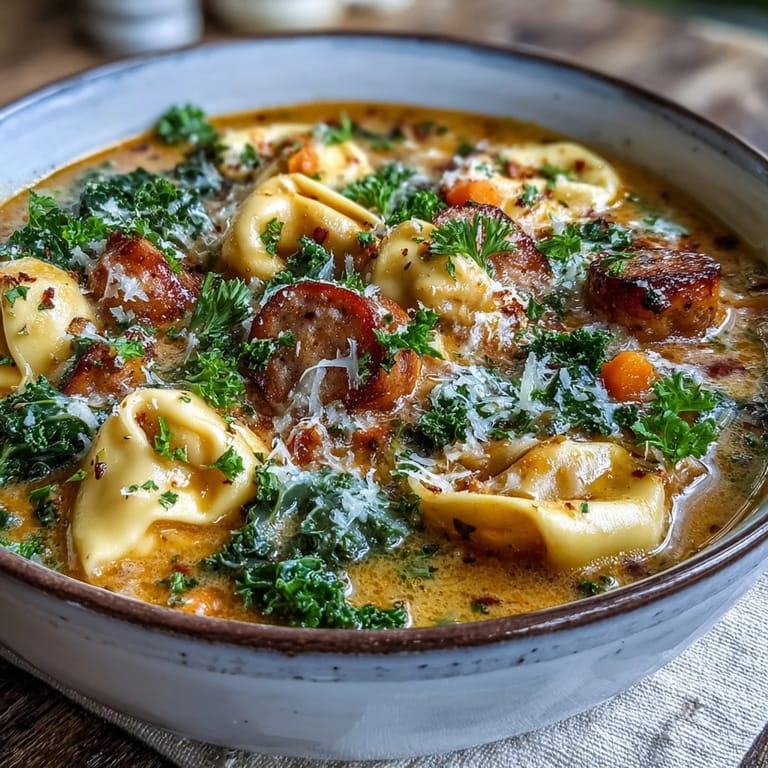 Autumn is when we all crave something that tastes like comfort but doesn't leave us sluggish, and this soup threads that needle perfectly. The pumpkin feels seasonal and a little bit indulgent, the sausage brings savory substance, the tortellini adds an elegant touch, and the kale anchors everything with something green and real. It's the kind of dish that says you're taking care of yourself without making it feel like work.