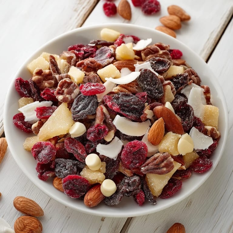 Pin It A fragrant winter blend featuring dried fruits, nuts, and warming spices—perfect for snacking on cold days or sharing at festive gatherings.